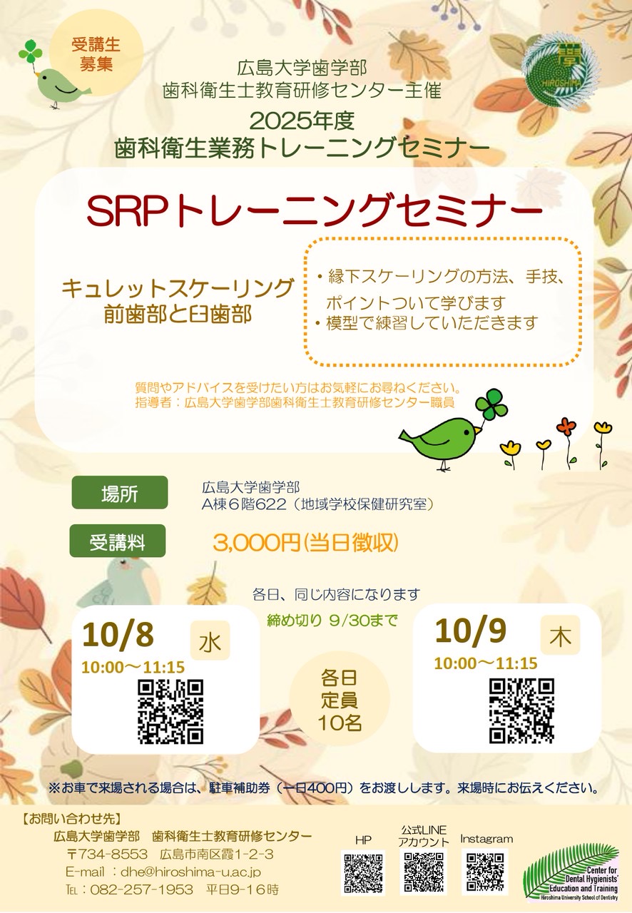 2025年10月8日(水)・10月9日(木)に「歯科衛生士業務トレーニングセミナー SRPトレーニングセミナー」を開催します。