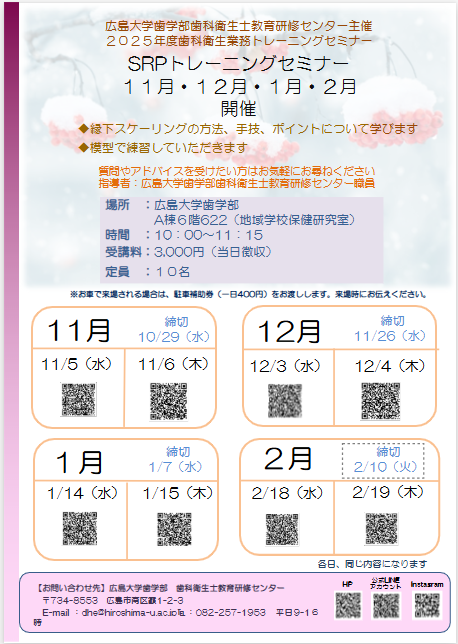 「歯科衛生士業務トレーニングセミナー SRPトレーニングセミナー」を開催します。