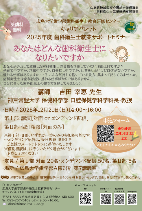 2025年12月21日(日)に「歯科衛生士就業サポートセミナー」を開催します。